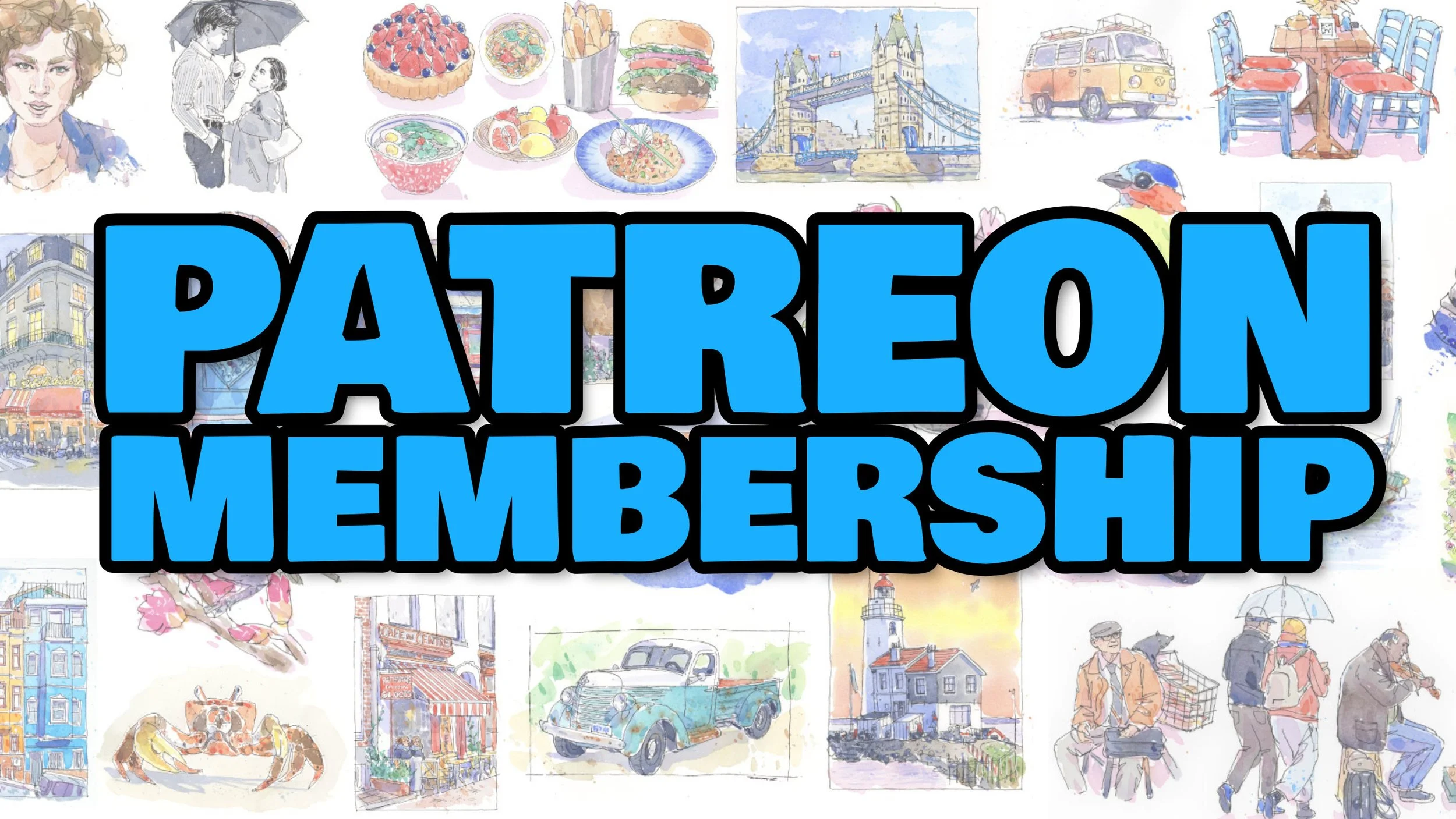 OPTION 1 - Join my Patreon monthly membership for full access to my library of over 130 tutorials, along with a new tutorial each week! Included in the membership is my ‘Urban Sketching For Beginners’ course & ‘Course Extension Tutorials’, plus you will be joining a vibrant sketching community to share your work and ask me questions!